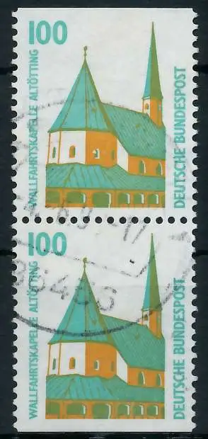 100 Pfg Wert aus der Ausgabe Sehenswürdigkeiten senkrechtes Paar oben und unten geschnitten aus Markenheftchen (MichelNr.: 1242406, 1406C, 1406D)