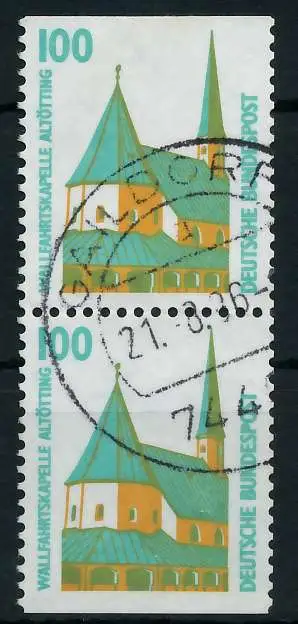 100 Pfg Wert aus der Ausgabe Sehenswürdigkeiten senkrechtes Paar oben und unten geschnitten aus Markenheftchen (MichelNr.: 1242406, 1406C, 1406D)