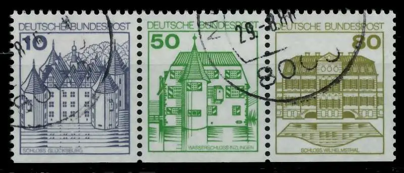 10+50+80 aus den Zusammendrucken Burgen und Schlösser Bund (MichelNr.: 1221076, W76, 913DI, 1038DI, 1140DI)