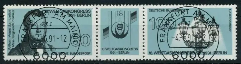 60 Pfg + ZF + 100 Pfg Wert aus der Ausgabe 18. Weltgaskongreß 1991 in Berlin (MichelNr.: 1537, 1538)