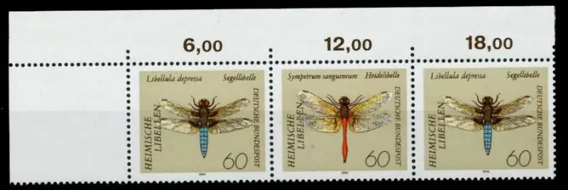60 + 60 + 60 Pfg waagerechter Zusammendruck aus der Ausgabe Libellen (MichelNr.: 1546, 1547, 1546)
