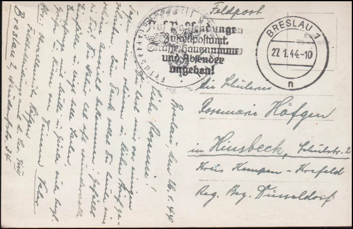 BS Feldbekleidungsamt der Luftwaffe 1/VIIII, Wekelsdorfer Felsen BRESLAU 27.1.44