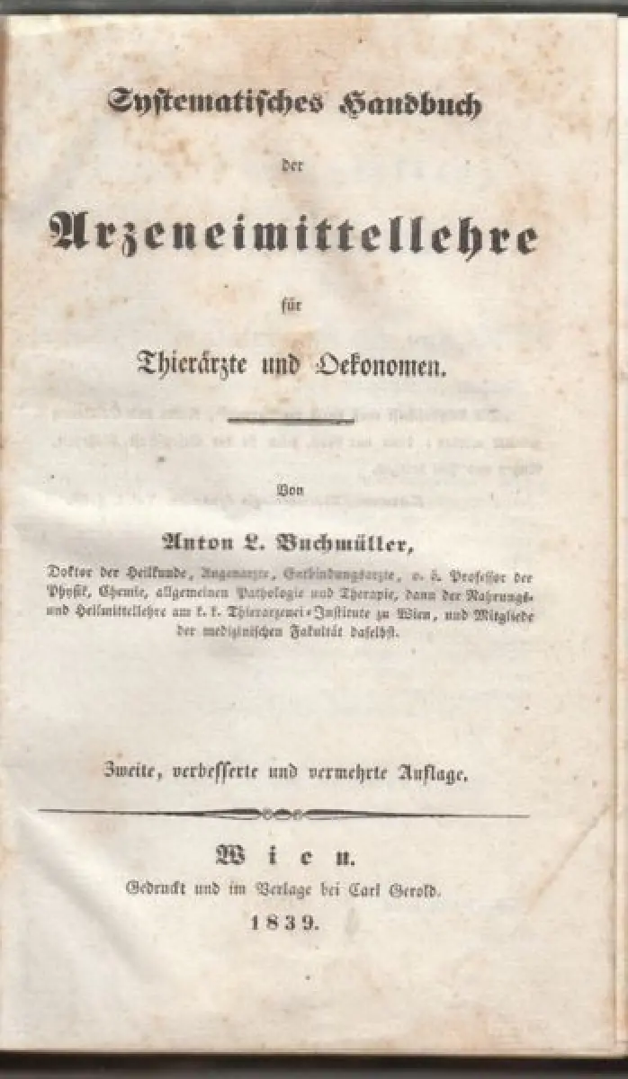 Wien, Gerold 1839. 2., verb. u. verm. Aufl. gr.-8°. XXX, 369 (1) S. Mit 2 mehrf. gefalt. Taf. HLdr. d. Zt. Berieb., Ecken etw. gestaucht.