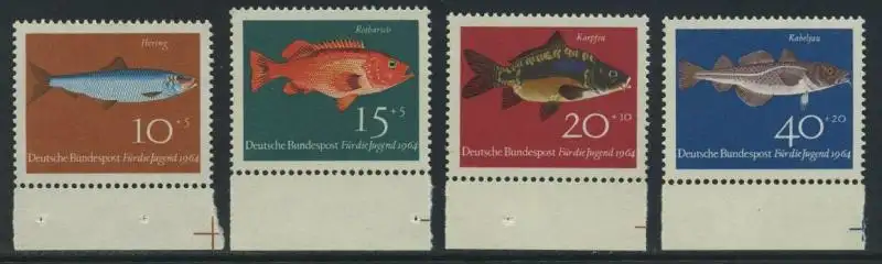 BUND 1964 Michel-Nummer 0412-0415 postfrisch SATZ(4) EINZELMARKEN RÄNDER unten