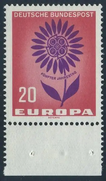 BUND 1964 Michel-Nummer 0446 postfrisch EINZELMARKE RAND unten