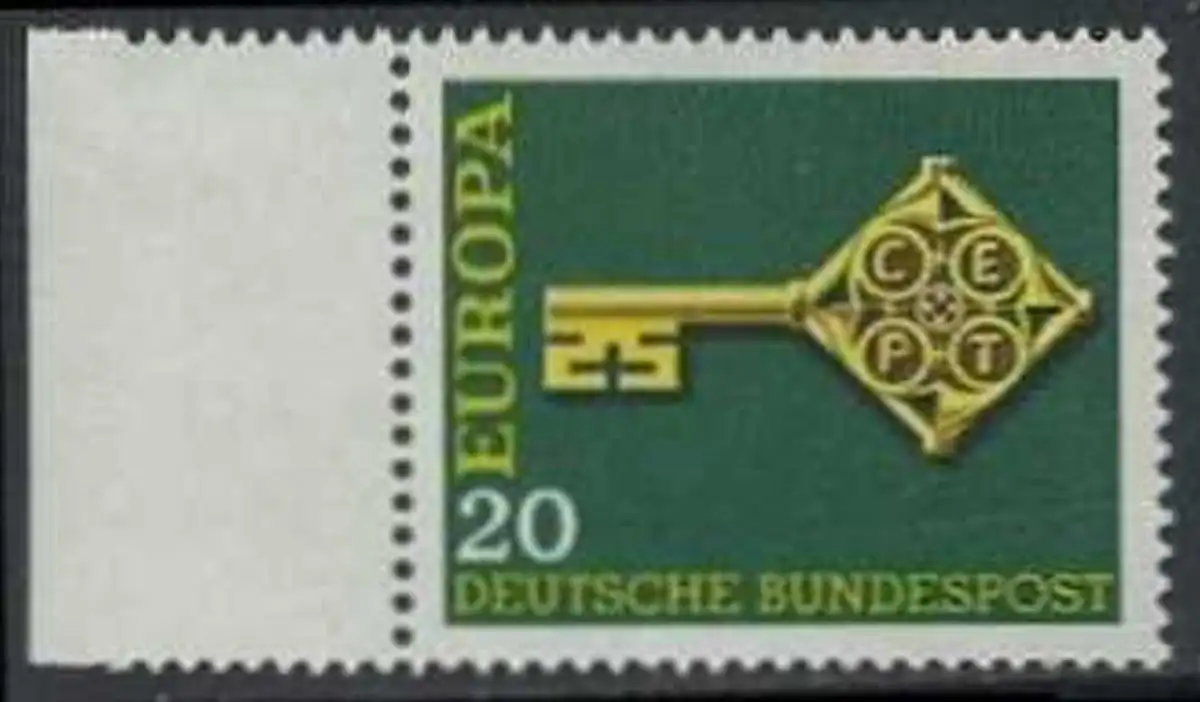 BUND 1968 Michel-Nummer 0559 postfrisch EINZELMARKE RAND links