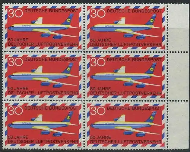 BUND 1969 Michel-Nummer 0577 postfrisch vert.BLOCK(6) RÄNDER rechts