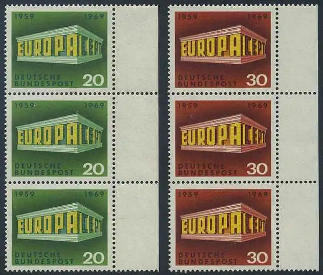 BUND 1969 Michel-Nummer 0583-0584 postfrisch SATZ(2) vert.STRIPS(3) RÄNDER rechts