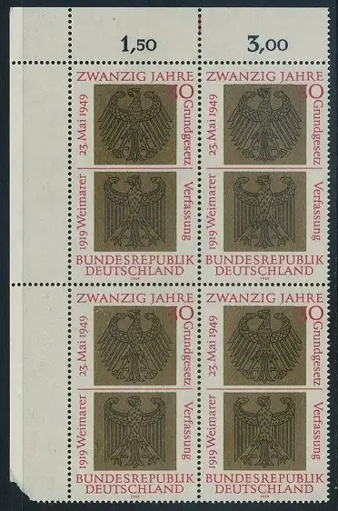 BUND 1969 Michel-Nummer 0585 postfrisch BLOCK ECKRAND oben links