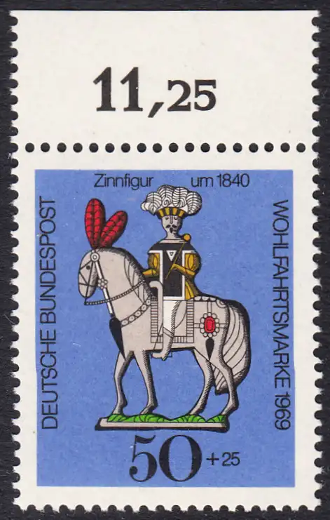BUND 1969 Michel-Nummer 0607 postfrisch EINZELMARKE RAND oben (a2)