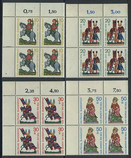 BUND 1970 Michel-Nummer 0612-0615 postfrisch SATZ(4) BLÖCKE ECKRAND oben links (b)