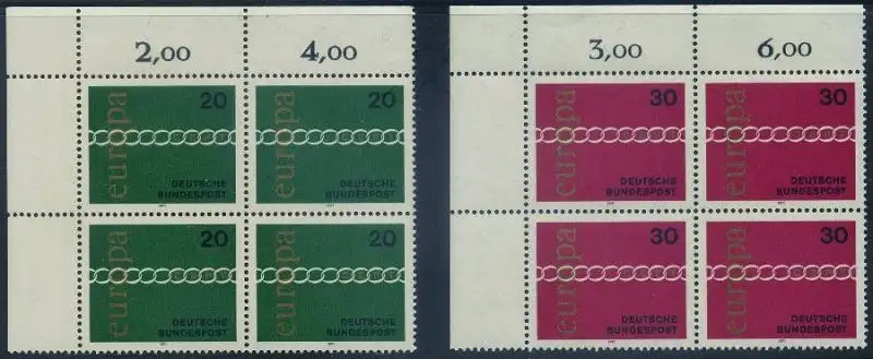 BUND 1971 Michel-Nummer 0675-0676 postfrisch SATZ(2) BLÖCKE ECKRAND oben links