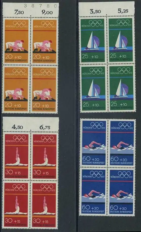 BUND 1972 Michel-Nummer 0719-0722 postfrisch SATZ(4) BLÖCKE RÄNDER oben