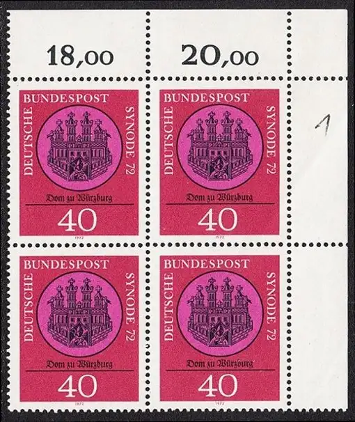 BUND 1972 Michel-Nummer 0752 postfrisch BLOCK ECKRAND oben rechts