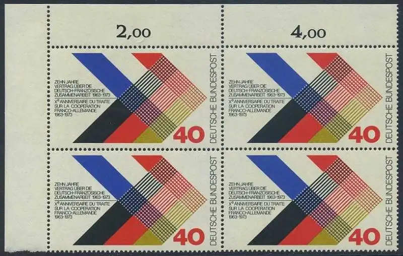 BUND 1973 Michel-Nummer 0753 postfrisch BLOCK ECKRAND oben links