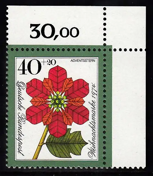 BUND 1974 Michel-Nummer 0824 postfrisch EINZELMARKE ECKRAND oben rechts
