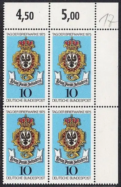 BUND 1975 Michel-Nummer 0866 postfrisch BLOCK ECKRAND oben rechts