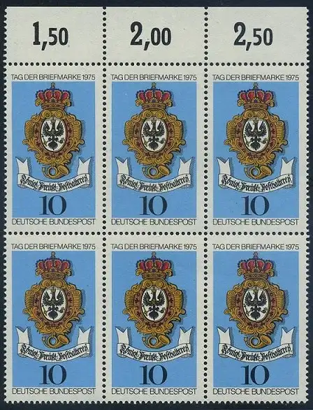 BUND 1975 Michel-Nummer 0866 postfrisch horiz.BLOCK(6) RÄNDER oben