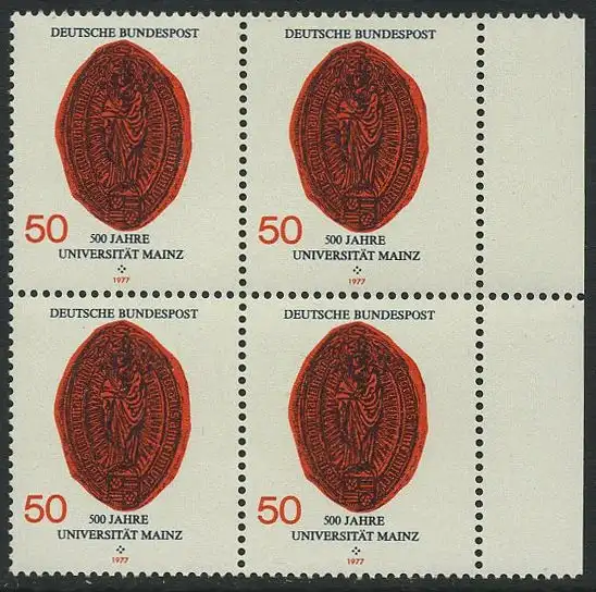BUND 1977 Michel-Nummer 0938 postfrisch BLOCK RÄNDER rechts