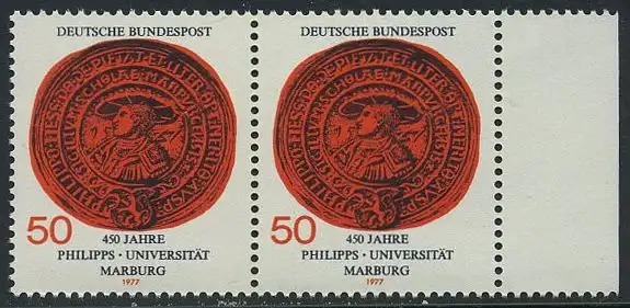 BUND 1977 Michel-Nummer 0939 postfrisch horiz.PAAR RAND rechts