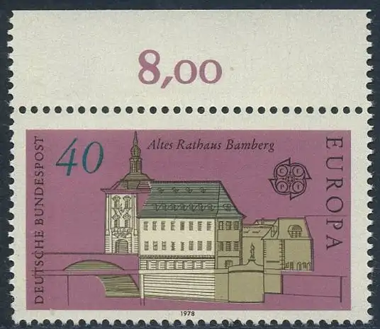 BUND 1978 Michel-Nummer 0969 postfrisch EINZELMARKE RAND oben
