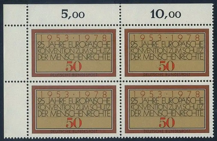 BUND 1978 Michel-Nummer 0979 postfrisch BLOCK ECKRAND oben links