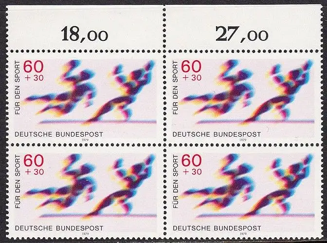 BUND 1979 Michel-Nummer 1009 postfrisch BLOCK RÄNDER oben