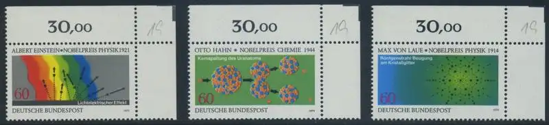 BUND 1979 Michel-Nummer 1019-1021 postfrisch SATZ(3) EINZELMARKEN ECKRÄNDER oben rechts (b)