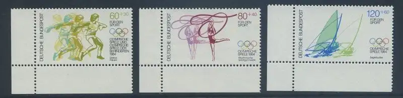 BUND 1984 Michel-Nummer 1206-1208 postfrisch SATZ(3) EINZELMARKEN ECKRÄNDER unten links