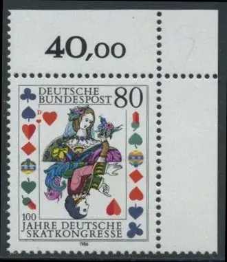 BUND 1986 Michel-Nummer 1293 postfrisch EINZELMARKE ECKRAND oben rechts