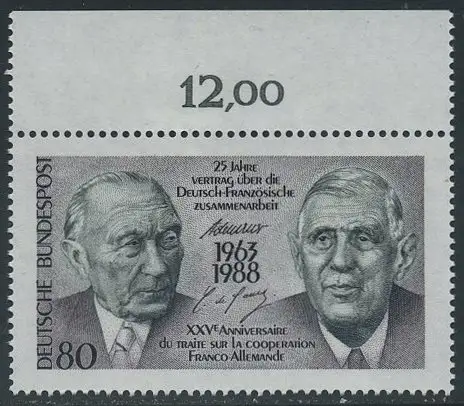 BUND 1988 Michel-Nummer 1351 postfrisch EINZELMARKE RAND oben (b)