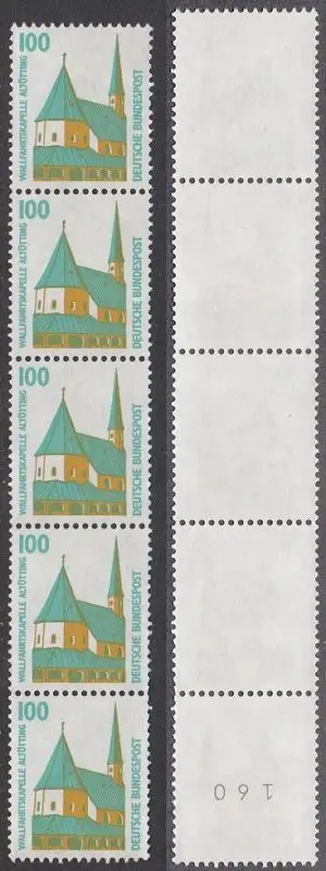 BUND 1989 Michel-Nummer 1406 postfrisch vert.STRIP(5) m/ rücks.Rollennummer 160