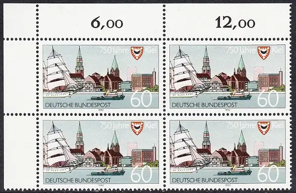 BUND 1992 Michel-Nummer 1598 postfrisch BLOCK ECKRAND oben links