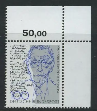 BUND 1992 Michel-Nummer 1629 postfrisch EINZELMARKE ECKRAND oben rechts