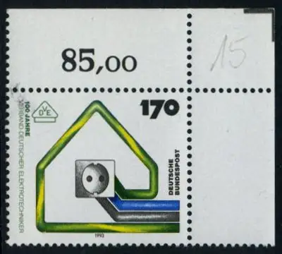 BUND 1993 Michel-Nummer 1648 postfrisch EINZELMARKE ECKRAND oben rechts (b)