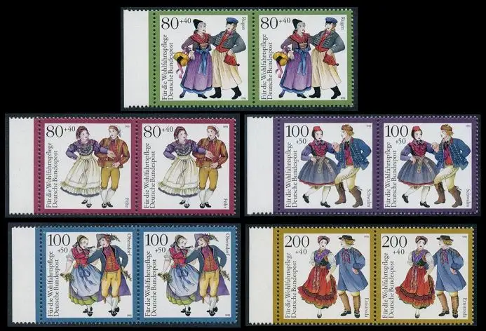 BUND 1993 Michel-Nummer 1696-1700 postfrisch SATZ(5) horiz.PAARE RÄNDER links