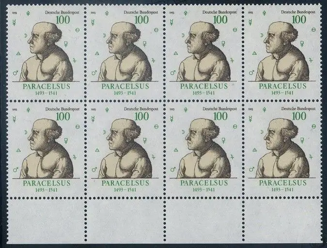 BUND 1993 Michel-Nummer 1704 postfrisch horiz.BLOCK(8) RÄNDER unten