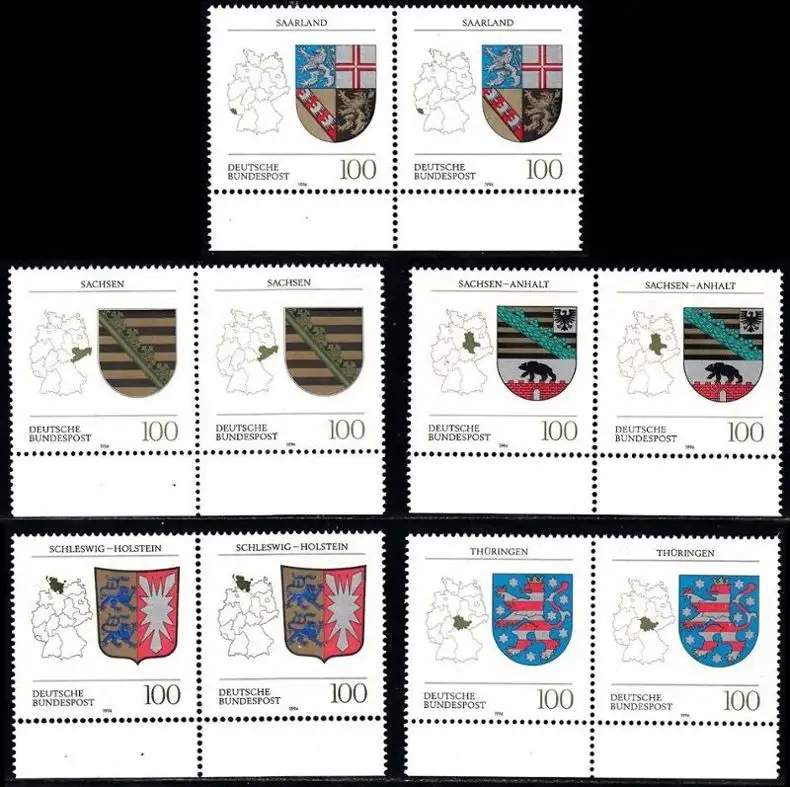 BUND 1994 Michel-Nummer 1712-1716 postfrisch SATZ(5) horiz.PAARE RÄNDER unten