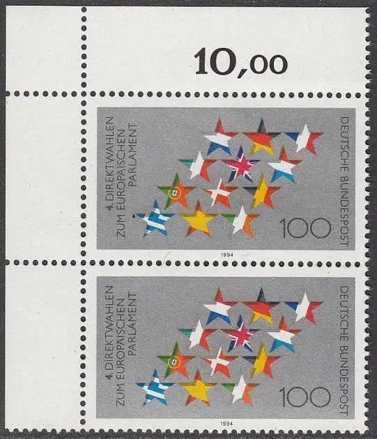 BUND 1994 Michel-Nummer 1724 postfrisch vert.PAAR ECKRAND oben links