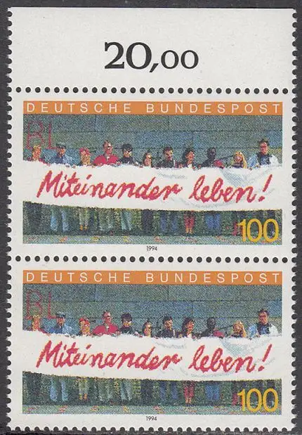 BUND 1994 Michel-Nummer 1725 postfrisch vert.PAAR RAND oben