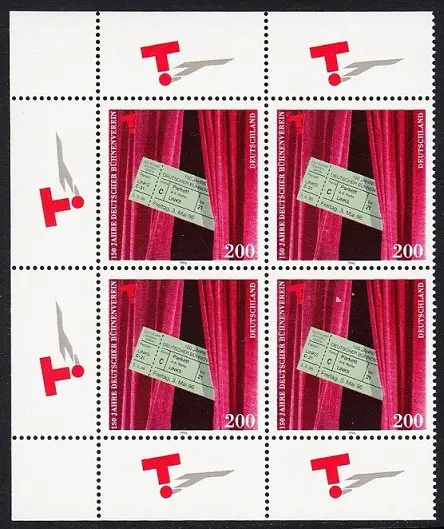 BUND 1996 Michel-Nummer 1857 postfrisch BLOCK Eckränder oben links/unten links