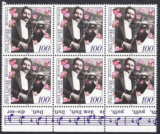 BUND 1996 Michel-Nummer 1876 postfrisch horiz.BLOCK(6) RÄNDER unten