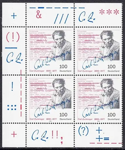 BUND 1996 Michel-Nummer 1893 postfrisch BLOCK Eckränder oben links/unten links