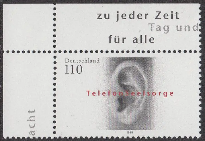 BUND 1998 Michel-Nummer 2021 postfrisch EINZELMARKE ECKRAND oben links