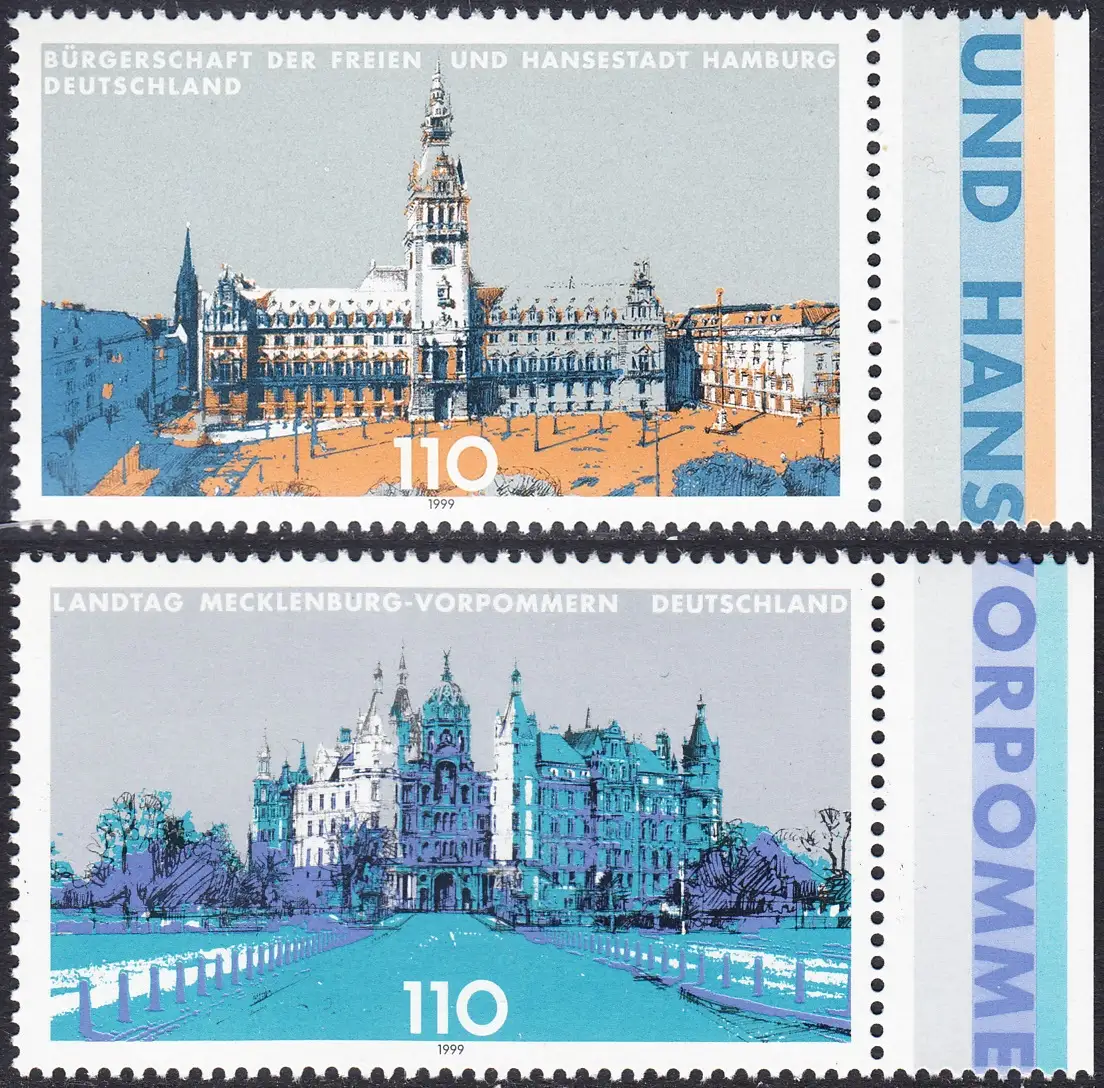 BUND 1999 Michel-Nummer 2036-2037 postfrisch SATZ(2) EINZELMARKEN RÄNDER rechts