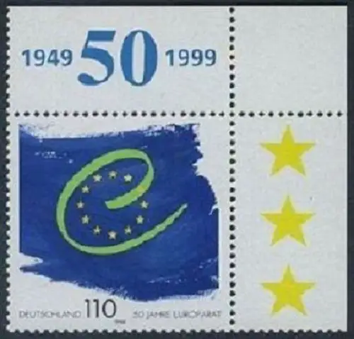 BUND 1999 Michel-Nummer 2049 postfrisch EINZELMARKE ECKRAND oben rechts