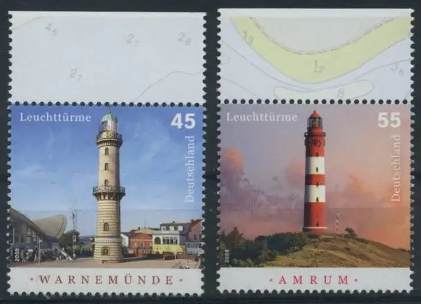 BUND 2008 Michel-Nummer 2677-2678 postfrisch SATZ(2) EINZELMARKEN RÄNDER oben (c)