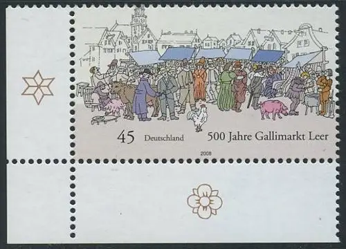 BUND 2008 Michel-Nummer 2696 postfrisch EINZELMARKE ECKRAND unten links