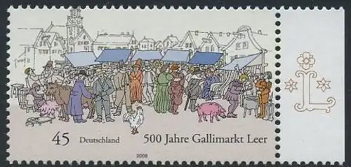 BUND 2008 Michel-Nummer 2696 postfrisch EINZELMARKE RAND rechts (a)