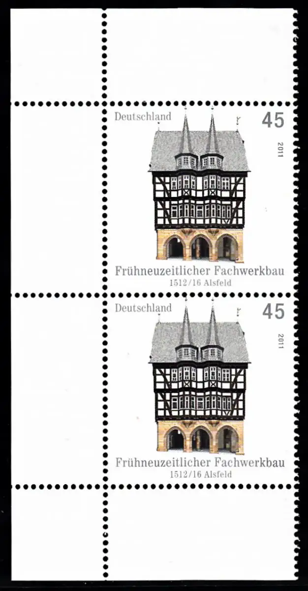 BUND 2011 Michel-Nummer 2861 postfrisch vert.PAAR ECKRÄNDER oben links/unten links